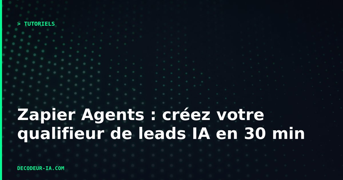 Ce tutoriel vous guide pas à pas pour créer un agent qui qualifie automatiquement vos leads entrants, enrichit leurs données et notifie votre équipe commerciale. Temps réel : 30 minutes. Prérequis : un compte [[link:zapier|Zapier]] gratuit.